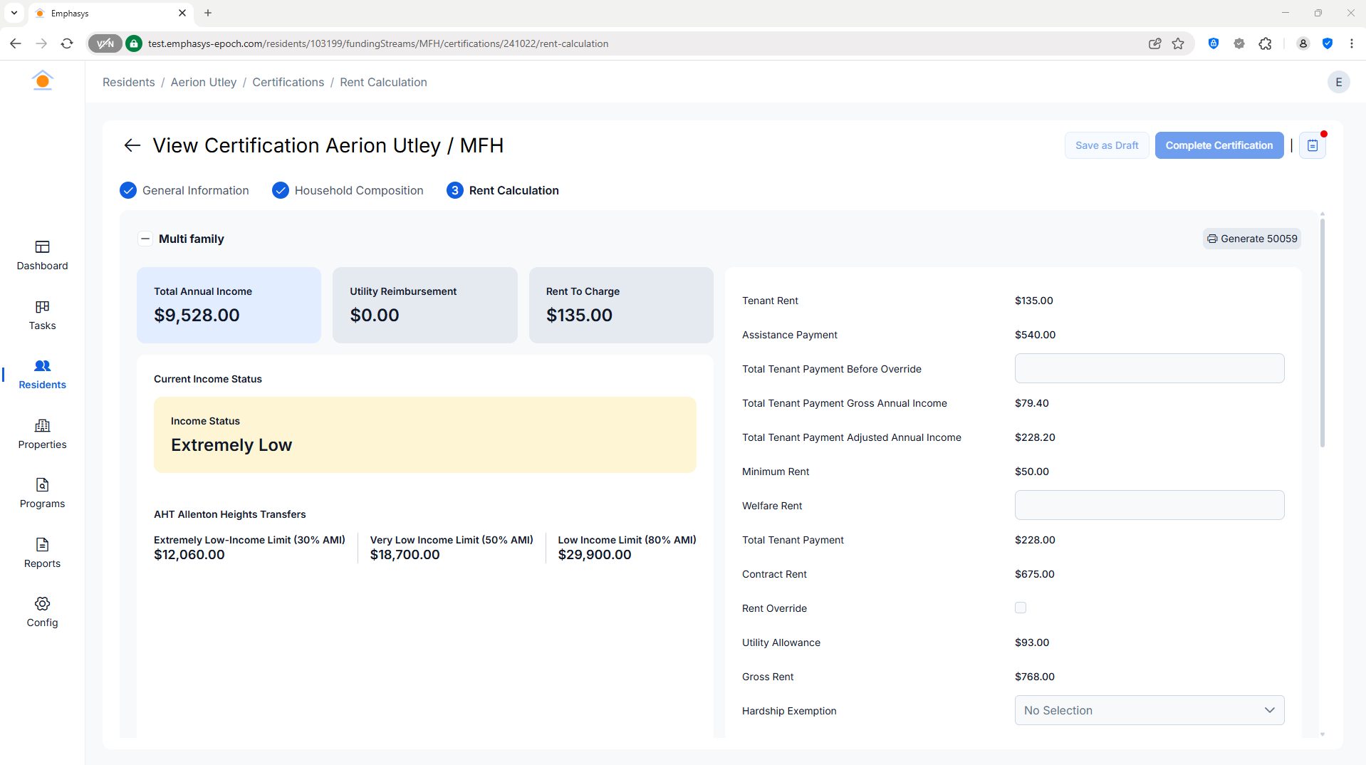 Epoch flags compliance issues with income limits, gross rent, and HOTMA asset rules with clear warnings that don’t block the workflow. Users can correct problems before exporting TIC or NAHMA files. HUD Multifamily stays pre‑HOTMA and will transition when HUD issues final guidance.